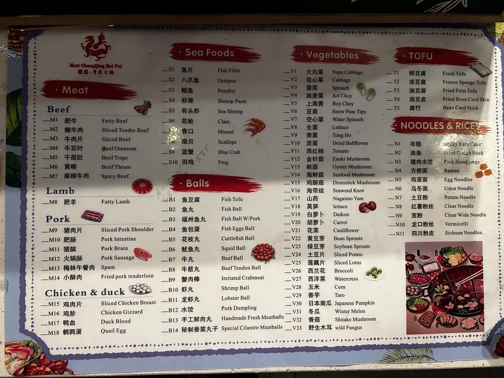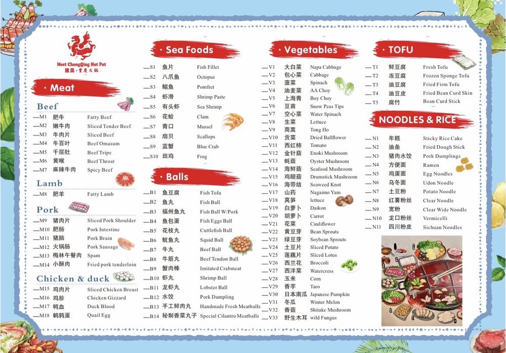 Meet Hot Pot Menu